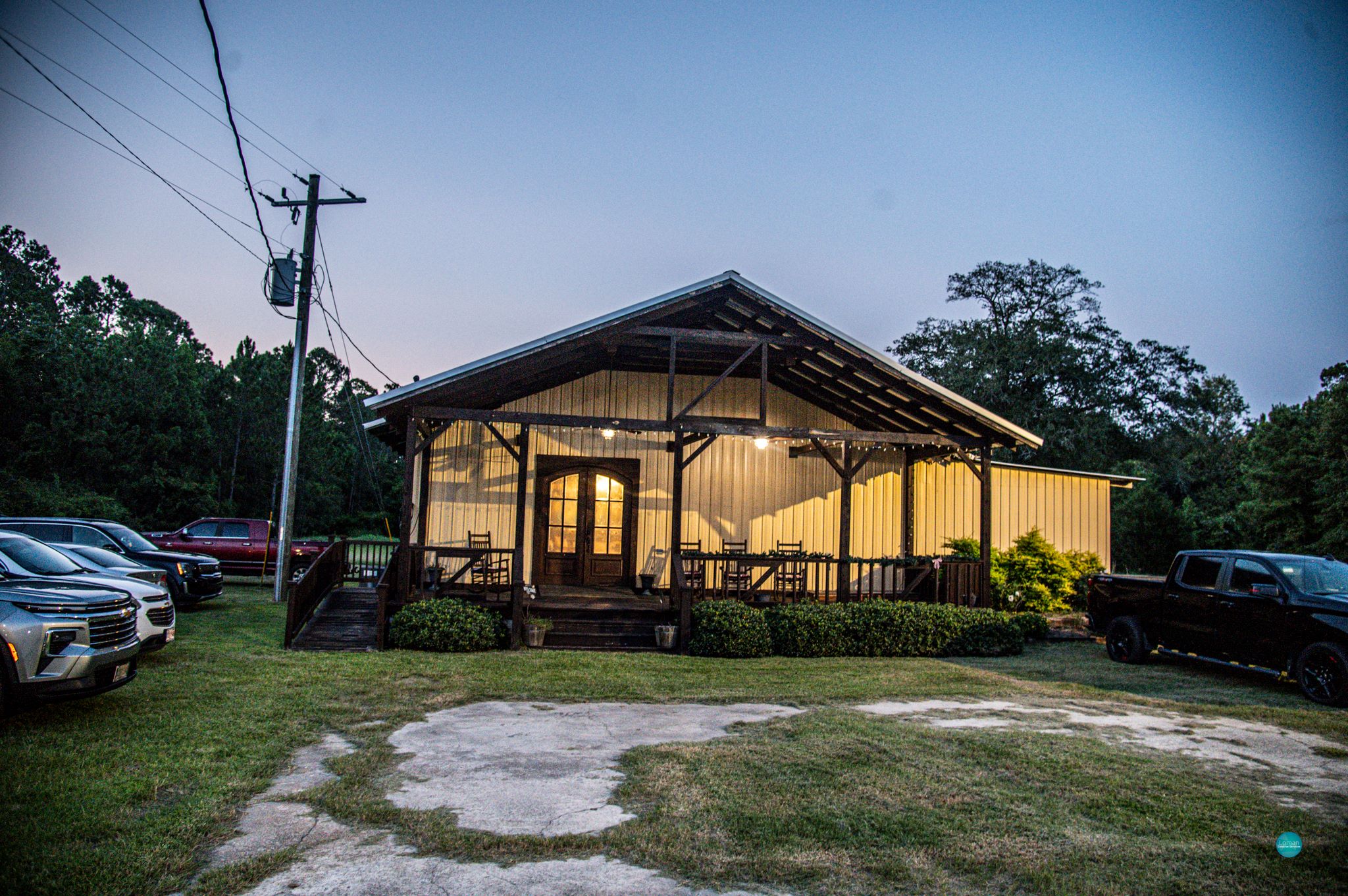 We offer an open event room to accommodate your guests and your celebration needs. It will accommodate up to 250 people comfortably. The venue also includes a porch with rocking chairs where guests can enjoy the outside. Our venue allows guests to enjoy a classic, rustic feel, yet elegant dining and social experience.